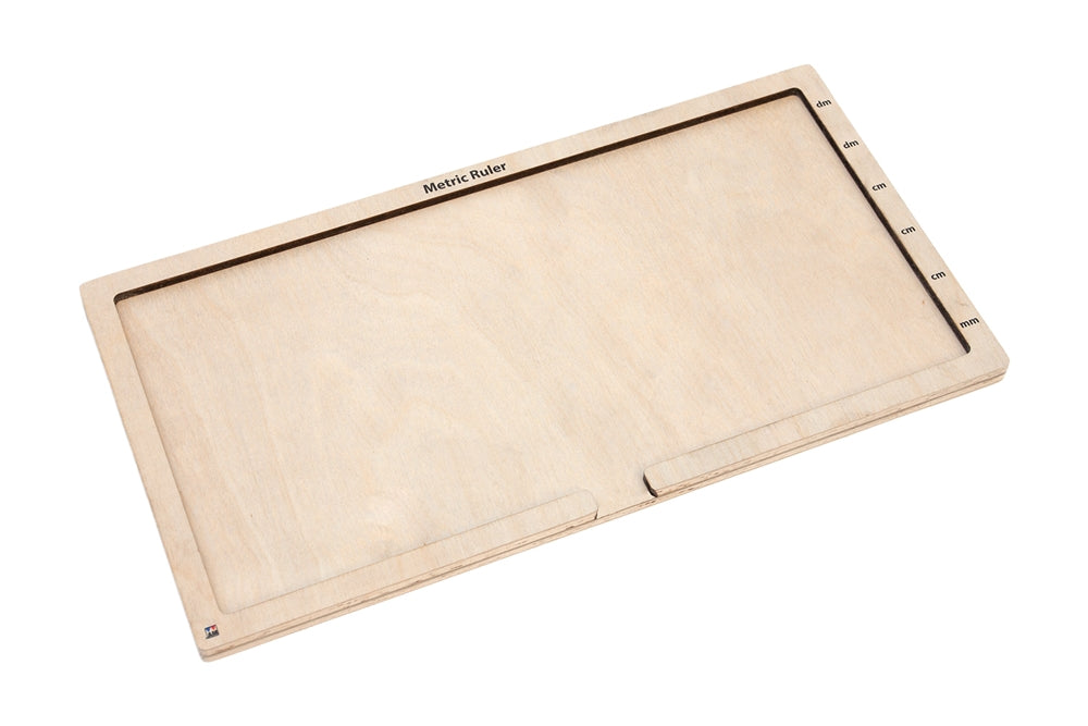 Our Montessori Metric Rulers Material is an excellent way to enhance the mathematical skills of children ages 6 to 9. The material comes in a wooden frame that contains five metric rulers with different graduations, representing decimeters (dm), centimeters (cm), and millimeters (mm) with increasing graduation.
