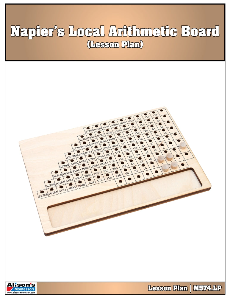 Napier’s Board is quite marvelous! It uses binary numbers to perform multiplication with multi-digit multiplicands and multipliers. Children who have previous experience with the Multi-Base Bead Frame, will particularly appreciate how quickly the board converts a base ten number into base two (binary).