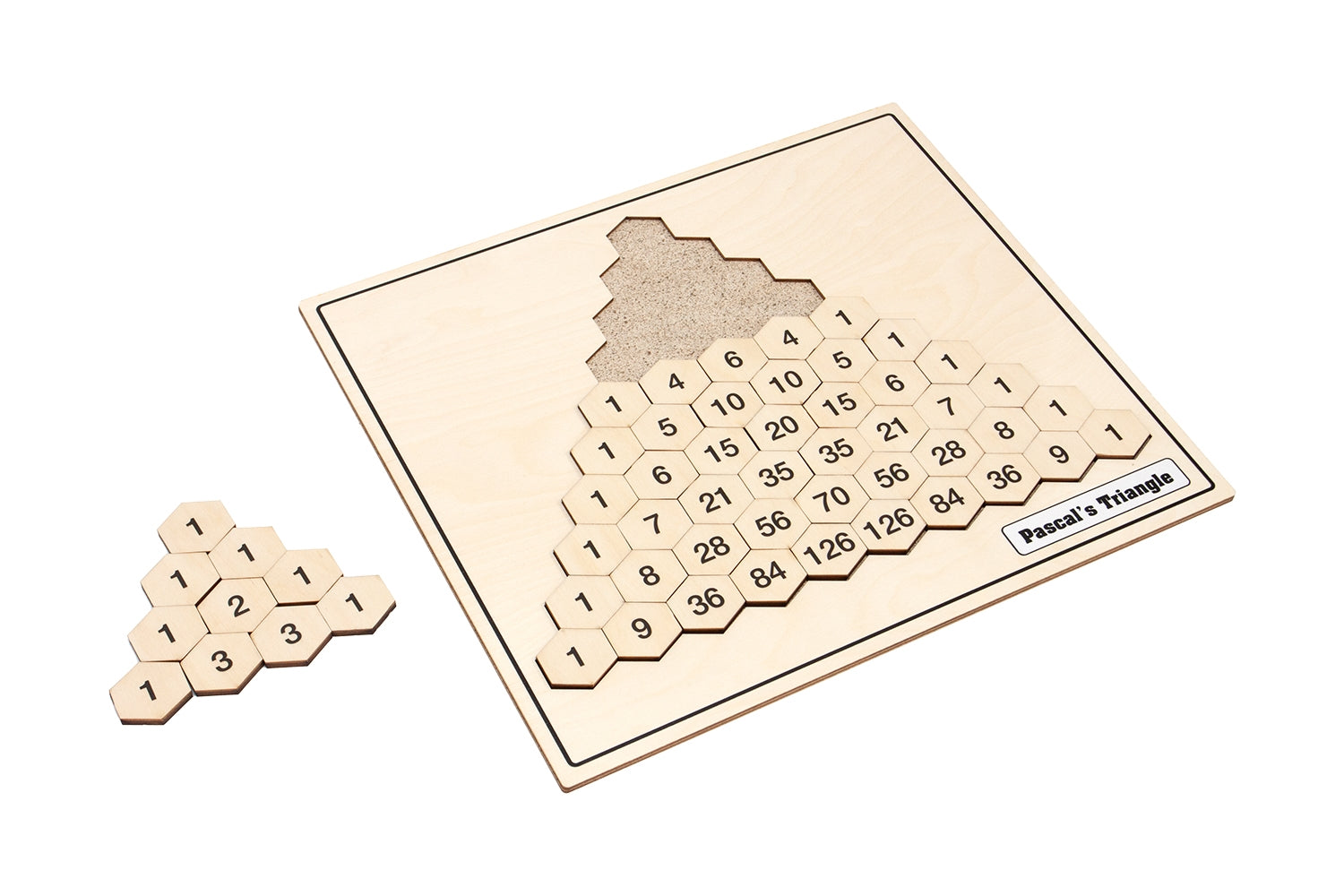 Each hexagonal tile fits perfectly into the board, allowing learners to reconstruct the triangle while understanding how each number is formed by the sum of the two numbers above it. Ideal for classrooms, homeschool environments, or math enrichment centers, this durable wooden set brings Blaise Pascal’s 17th-century discoveries to life while reinforcing addition, pattern recognition, and logical thinking.