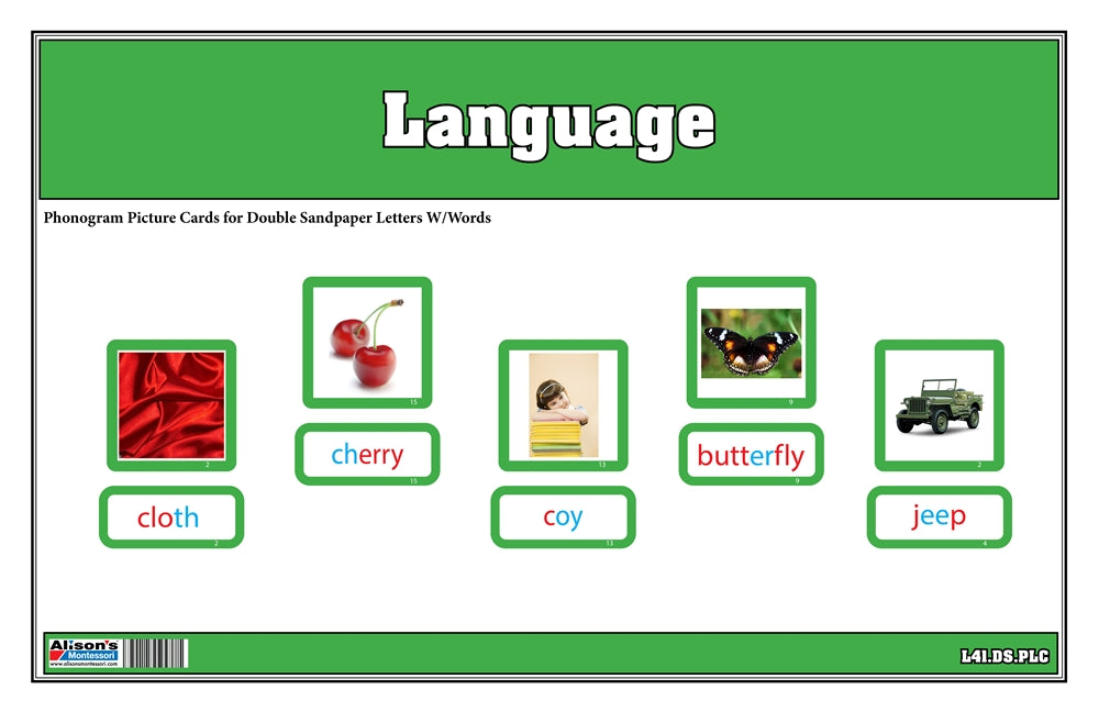 Order "Phonogram Picture Cards w/ word labels for Double Sandpaper Letters" by 6 PM for next-day delivery!