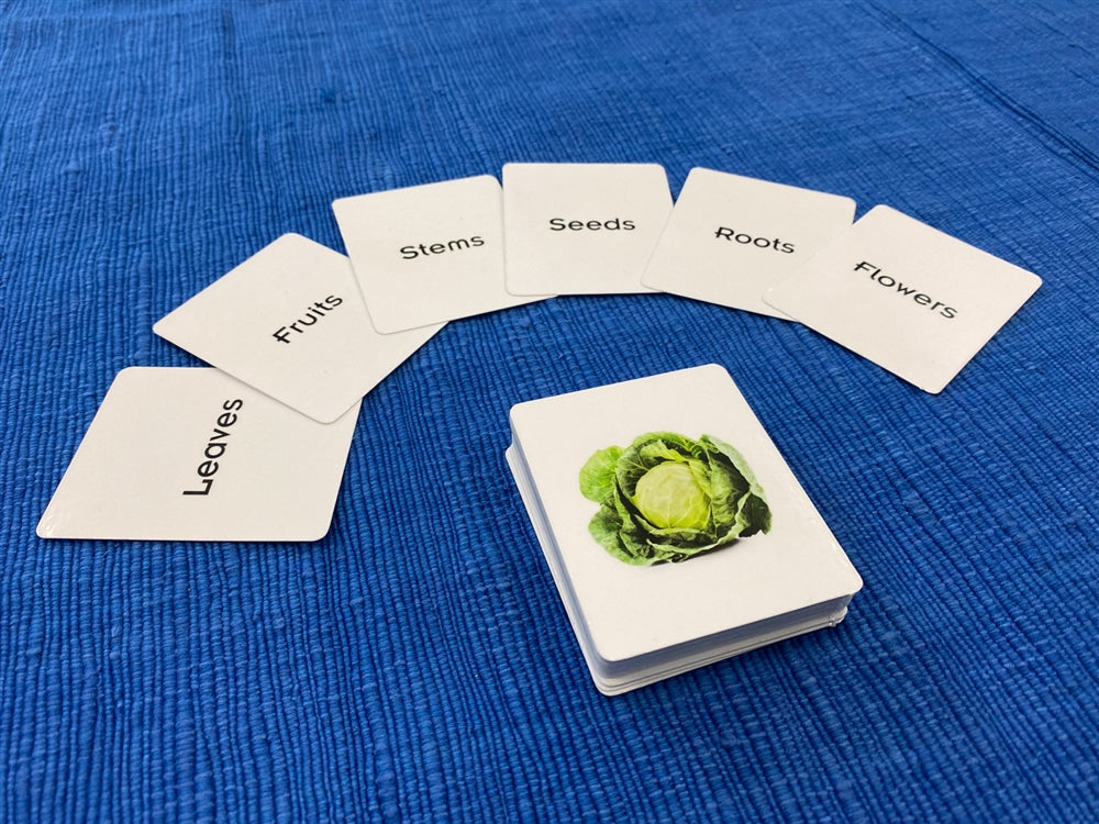 Edible Parts of a Plants makes a perfect addition to the Montessori Botany curriculum for primary level as well as a concept development material. Children learn to classify the parts of a plant: roots, stems, leaves, flowers, fruits, and seeds. They also learn which plants are edible. Indirectly, they are prepared to learn about the parts that make a plant, which will be further studied in botany lessons. Our material contains a silhouette on the back of each card which serves as a control for error. The set consists of 6 label cards, and 30 real pictures for each category.