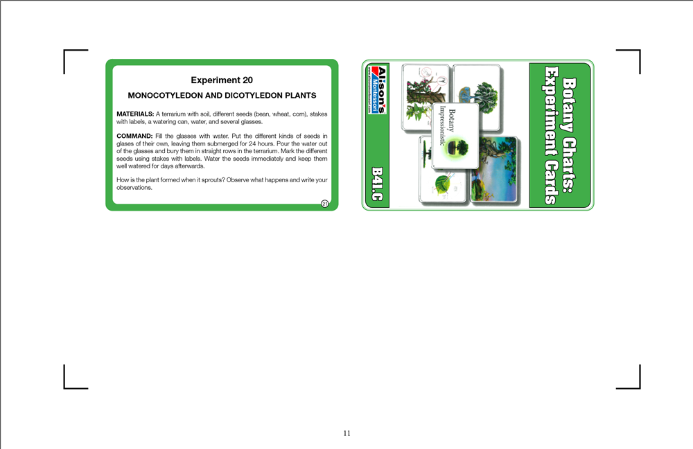 The Botany Impressionistic Charts have been used for decades in Montessori classrooms. They consist of 19 colorful hand draw extra large charts, 19 story cards, and 21 experiment cards.