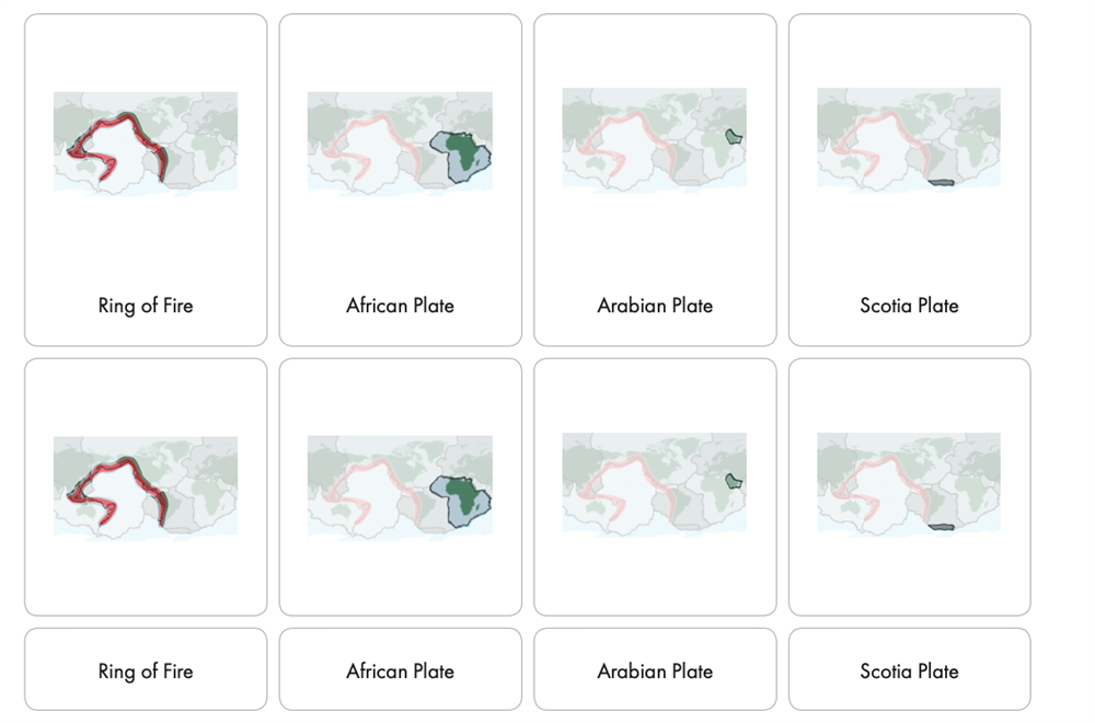 | North American Plate | South American Plate | 14 picture-label cards |